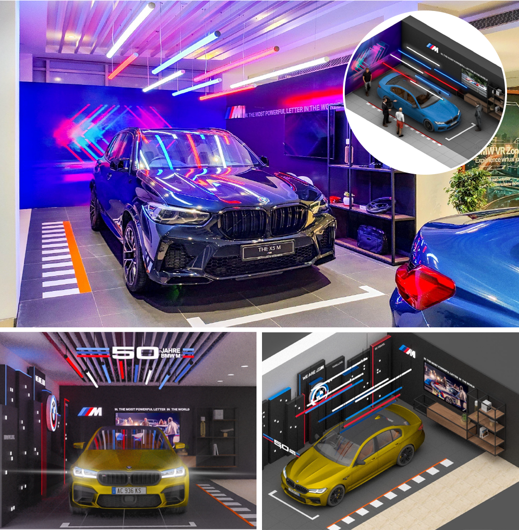 Working along side well known brands like the BMW Group requires special care. For the BMW M Display in Bani, Gurgaon, we strengthened brand recognition by utilizing colors correlated with the brand while creating an interactive visual experience for customers.