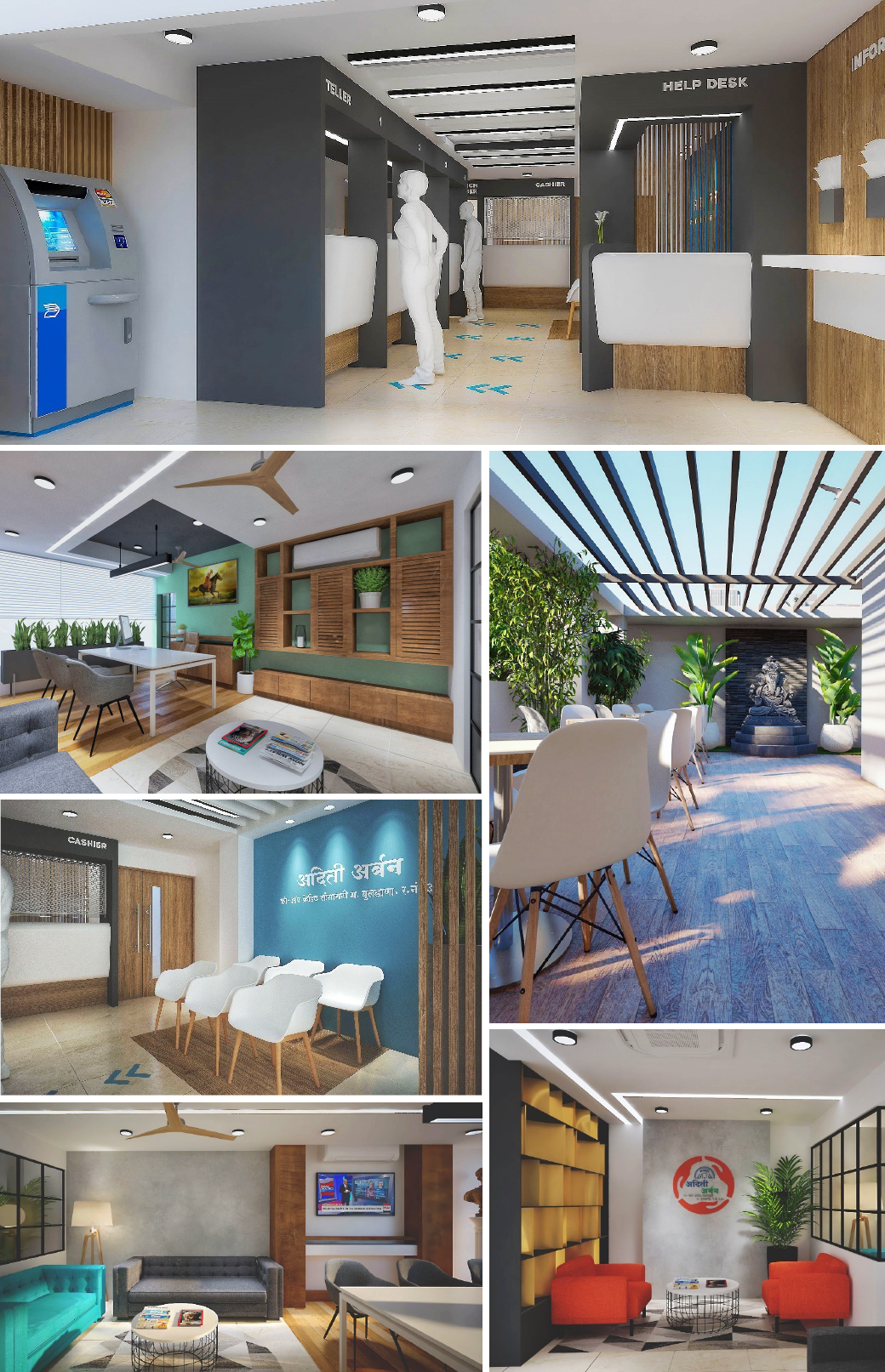 Designing the co-operative Bank and Head Office for Aditi Urban to feel professional and open, allowing clients to feel at ease when working with staff with their finances.